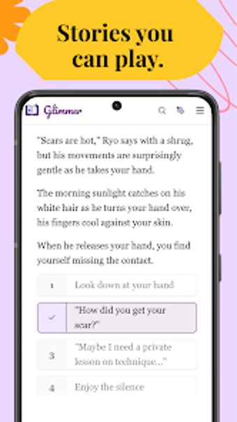 Glimmer: Interactive Fanfics es una aplicación para Android que te permite sumergirte en historias de fanfiction interactivas, donde el usuario toma decisiones que afectan el desarrollo de la trama. Con una amplia variedad de géneros y temáticas, los usuarios pueden vivir sus fantasías a través de relatos que van desde romances hasta aventuras épicas. La comunidad de escritores contribuye constantemente con nuevo contenido, asegurando que siempre haya algo fresco para disfrutar.